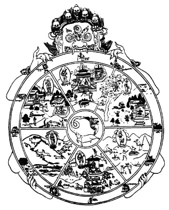 The Sidpe-Korlo or World Wheel represents the course of human experience